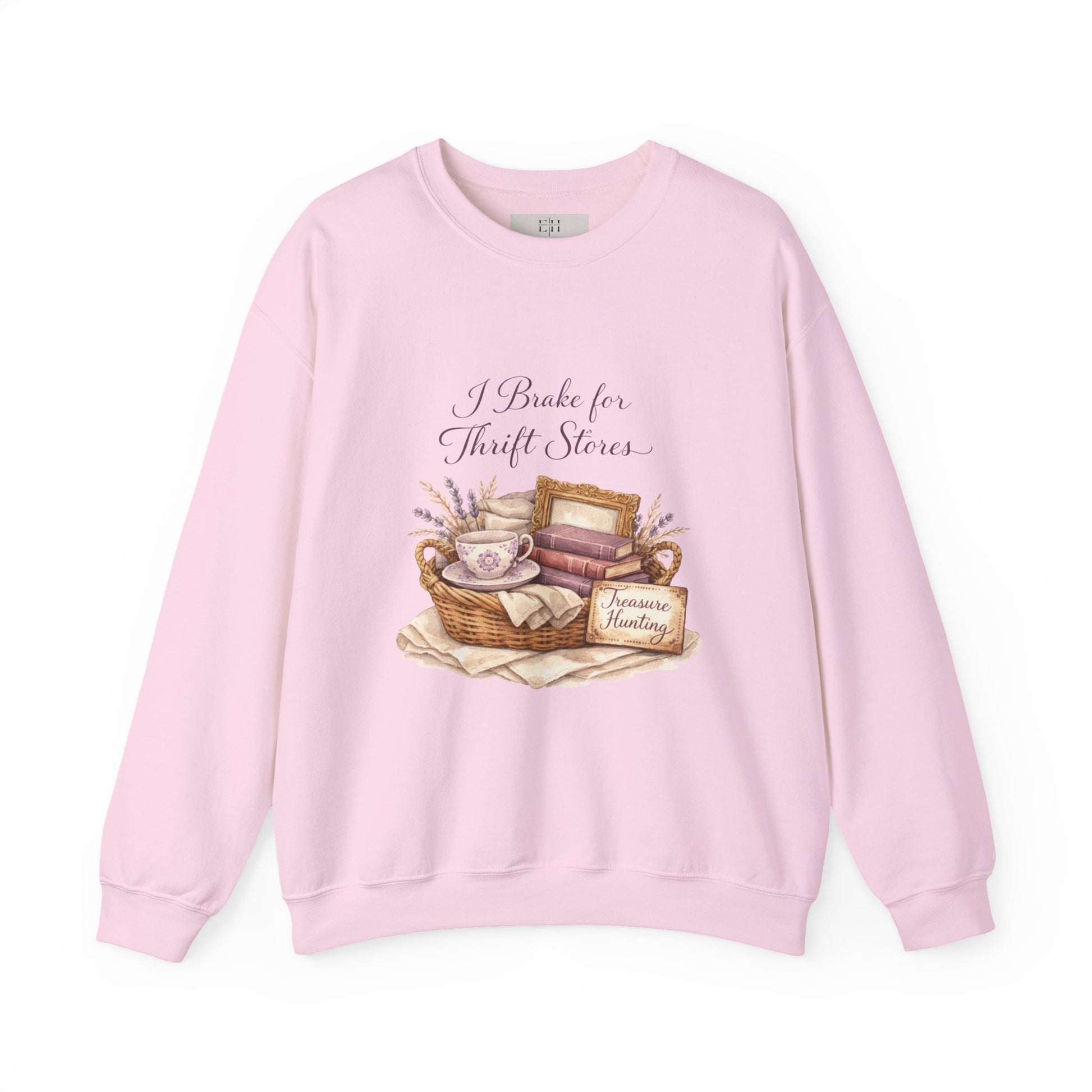For the ones who always say, “Just one more thrift store.” This “I Brake for Thrift Stores” sweatshirt is made for slow Sundays, bookstore browsing, coffee stops, and those treasure-hunting afternoons where you swear you’re just looking. The soft watercolor design features a charming wicker basket filled with vintage books, delicate teacups, and cozy linen — a gentle nod to secondhand finds and intentional living. Printed on a warm neutral crewneck, this piece blends cottage core charm with everyday comfort. It’s relaxed, cozy, and easy to style with denim, leggings, or layered over a thrifted dress. Whether you’re browsing antique aisles or curled up with a good book, this sweatshirt feels like home.